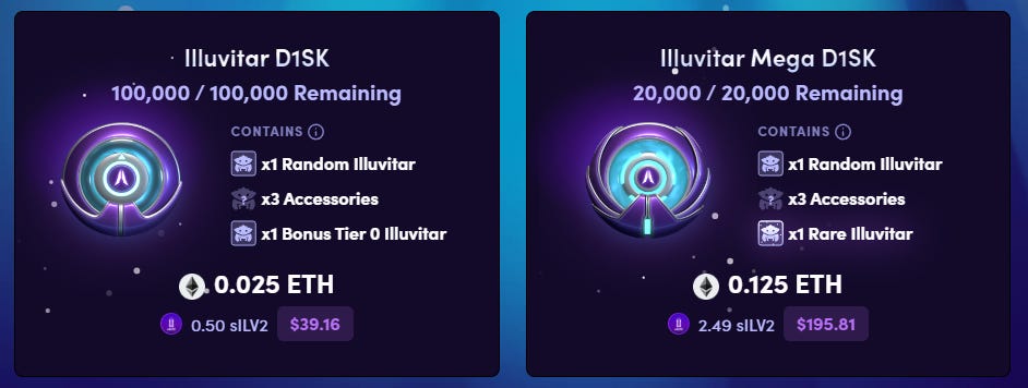 In terms of the launch, players will be able to buy D1SKS, which include two Illuvitar characters of varying rarities and three accessories.