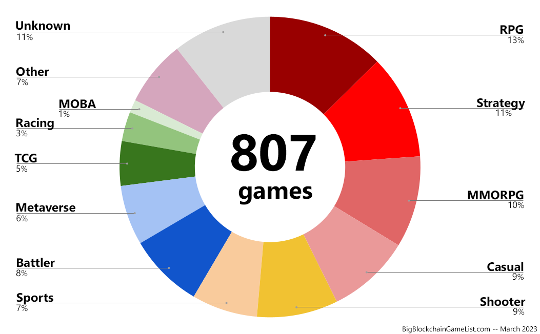Unsuprisingly, genres such as RPGs and strategy rank high, not only because these are hardcore genres but because these games generally contain a lot of in-game assets and deep economies which nominally can be mapped to NFTs and tokens.